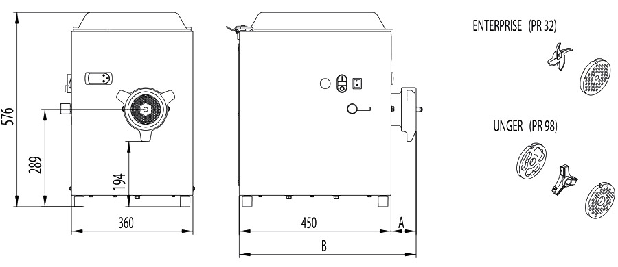 - Обойма, гайка, шнек полностью из нержавеющей стали с системой ножей ENTERPRISE (PR-32) и UNGER (PR-98).