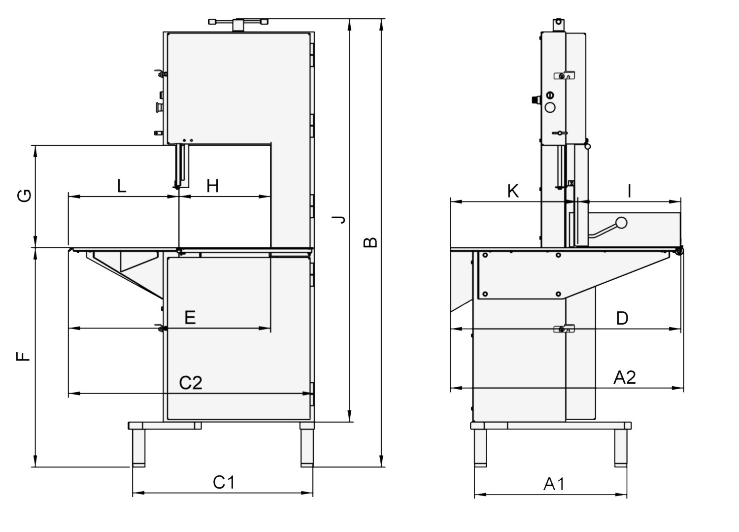 Ленточная пила серия B – стол с наклонной рампой для нарезания ломтиками и крышкой фиксации стола